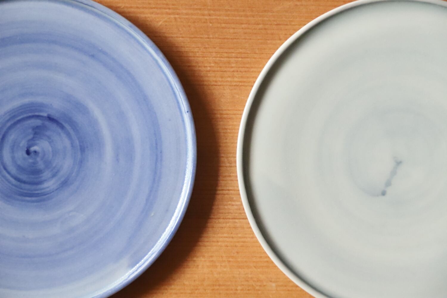 マットな釉薬の風合い、お皿の青やグレー系の色味なのは、盛り付ける主役を引き立てるために。